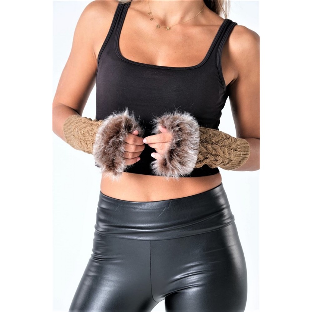 Kahveregi Kürklü Yün Parmaksız Eldiven Kahverengi ELVKYKT21