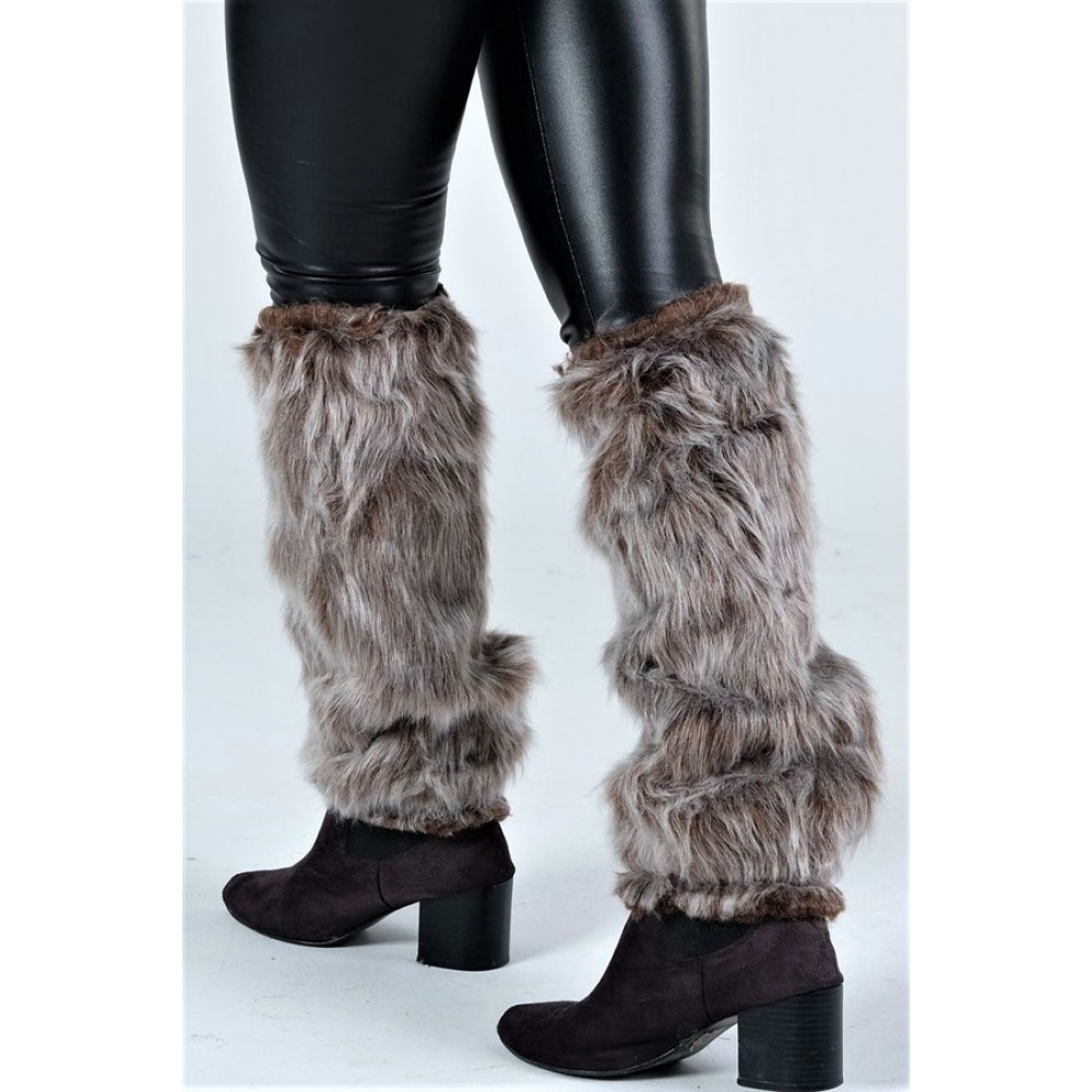 Beyaz Kahverengi Desenli Tüylü Peluş TozlukAyakkabı ve Çizmelerin üzerine giyebileceğiniz Peluş Tozl..