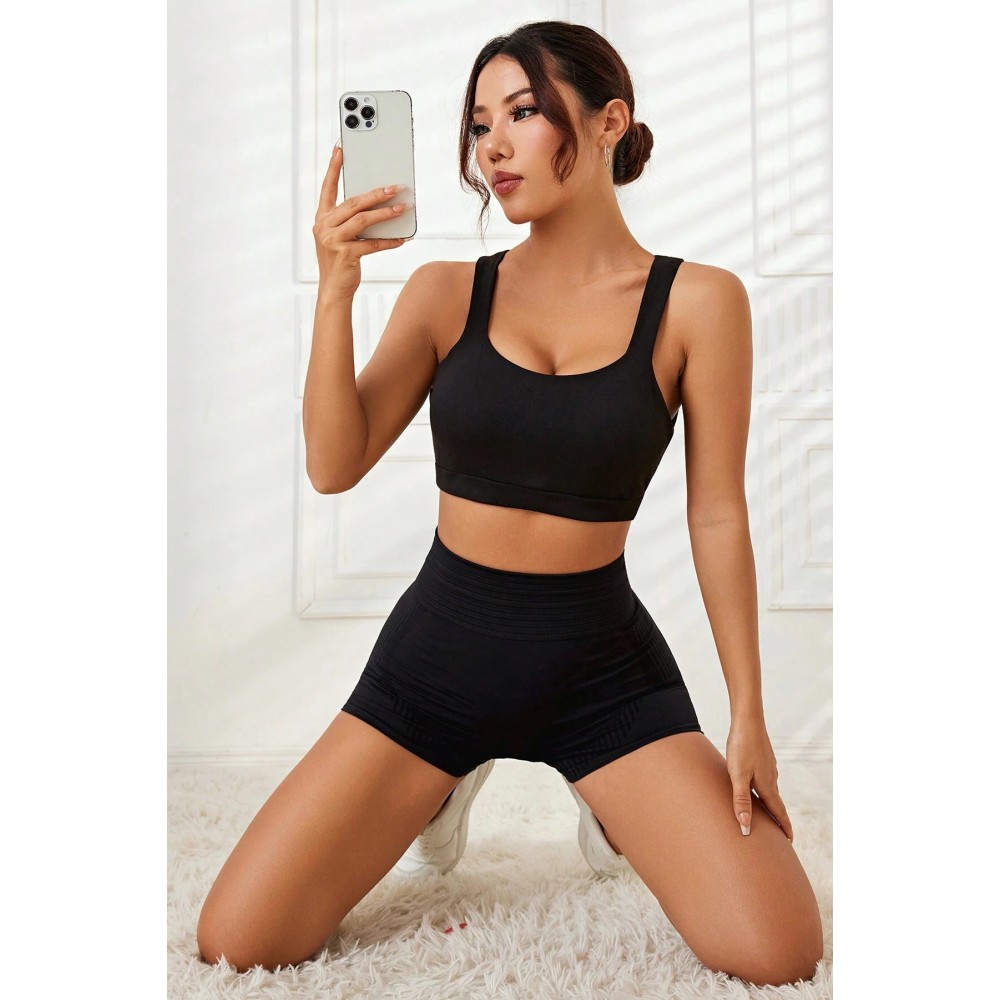 Kadın Siyah Çapraz Sırt Detaylı Şık Crop Top Büstiyer…