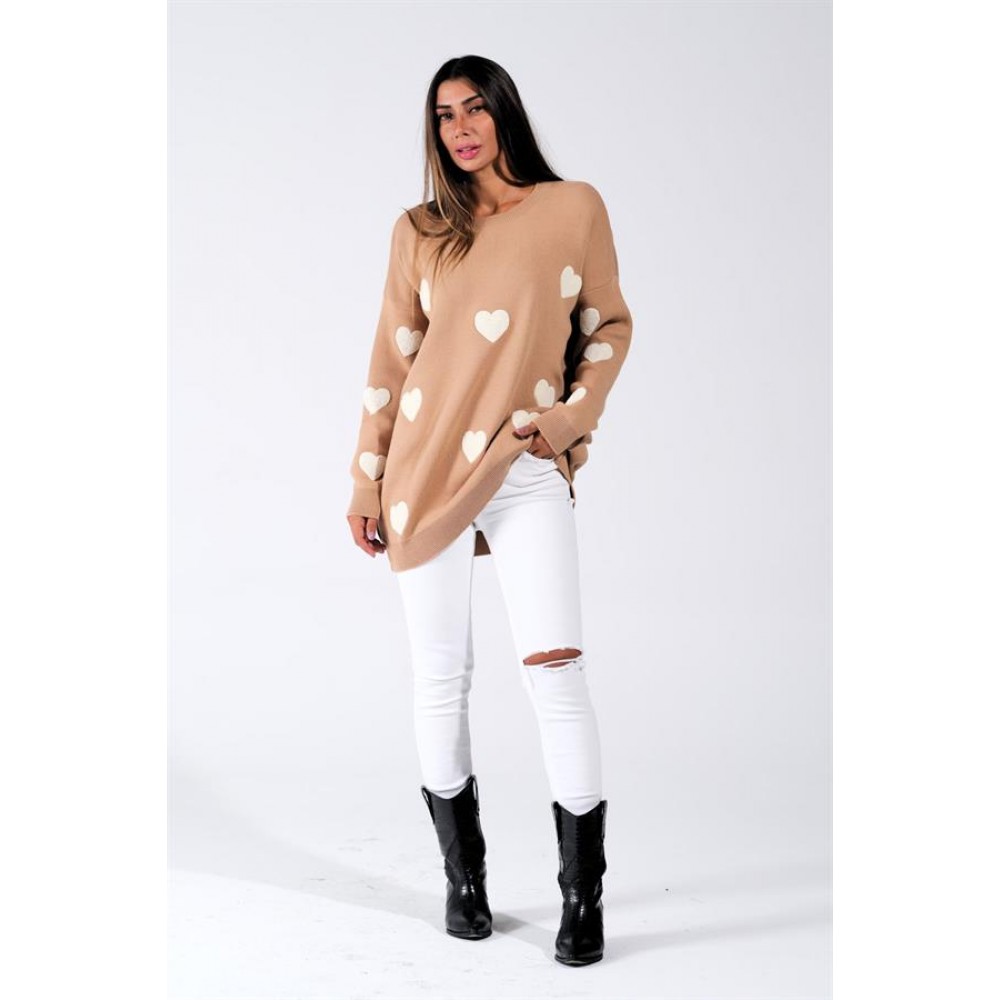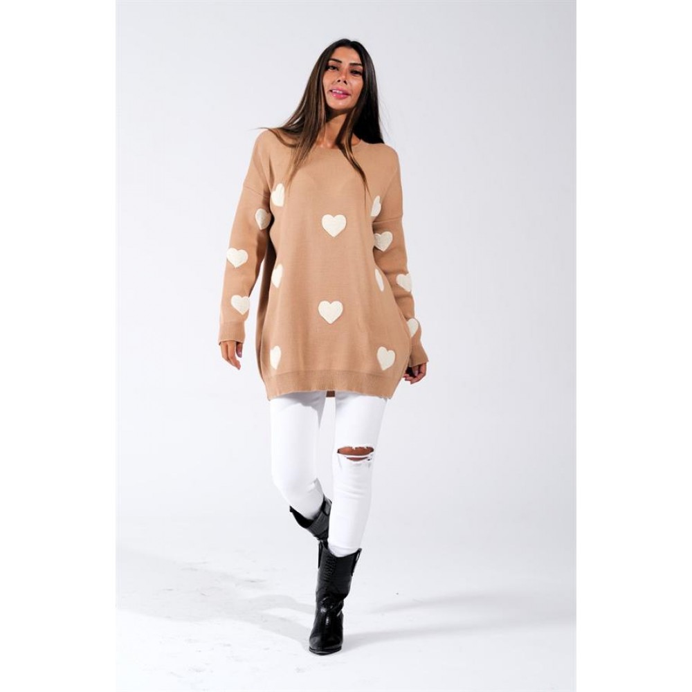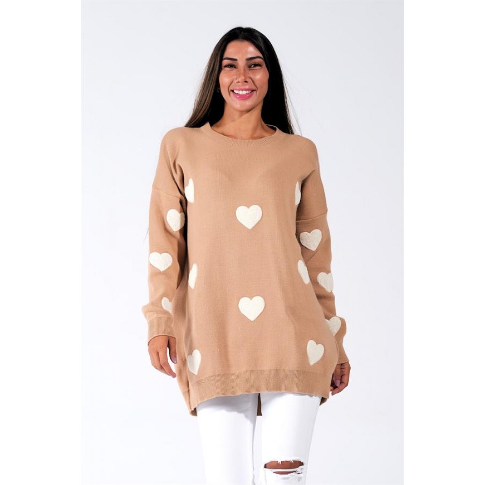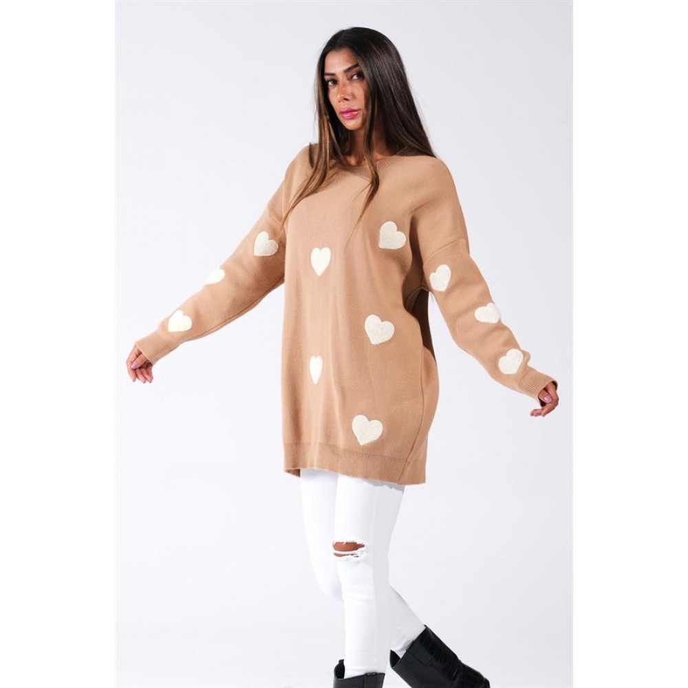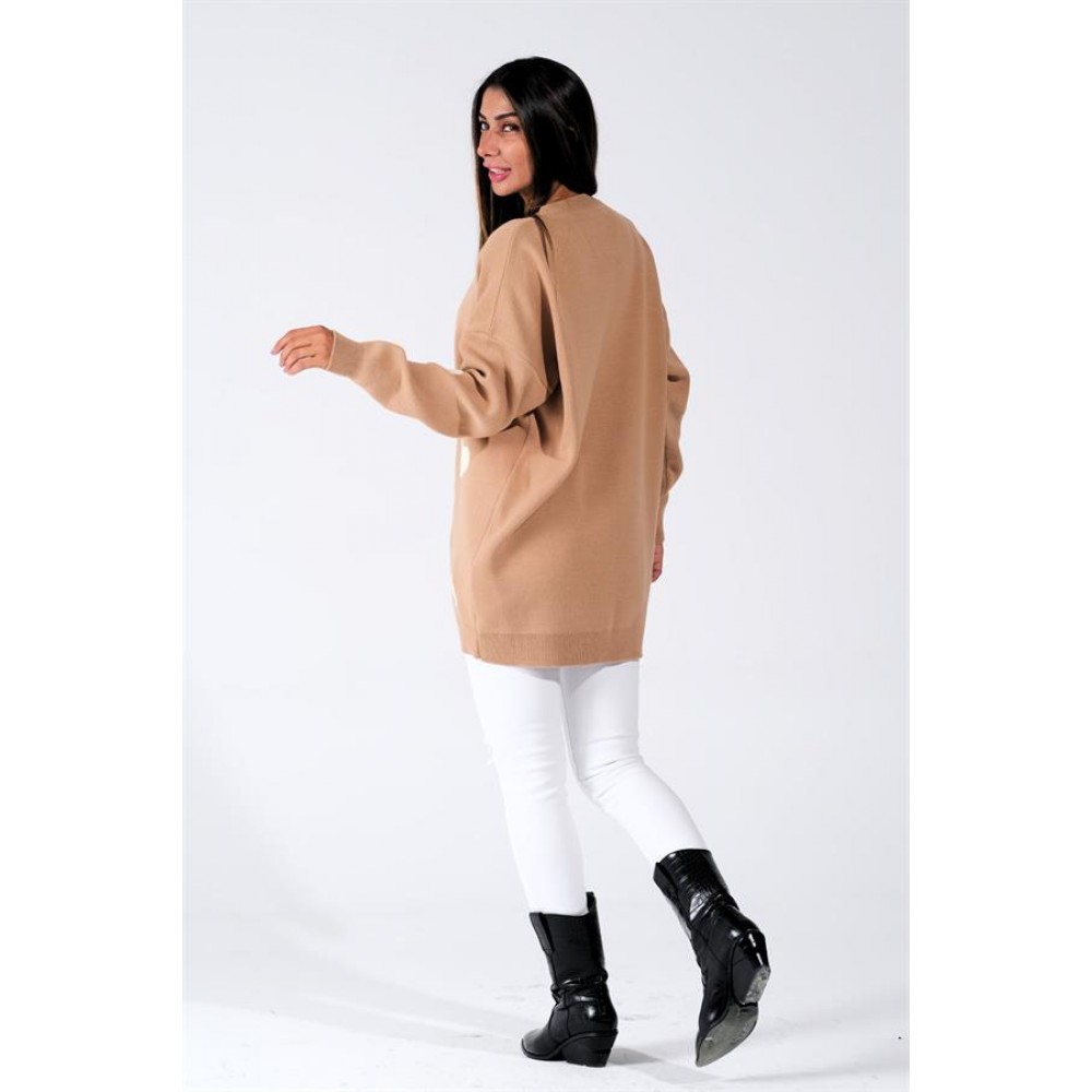 Kahverengi Kabartma Kalpli Triko Kazak Kahverengi TRWKBKT3107