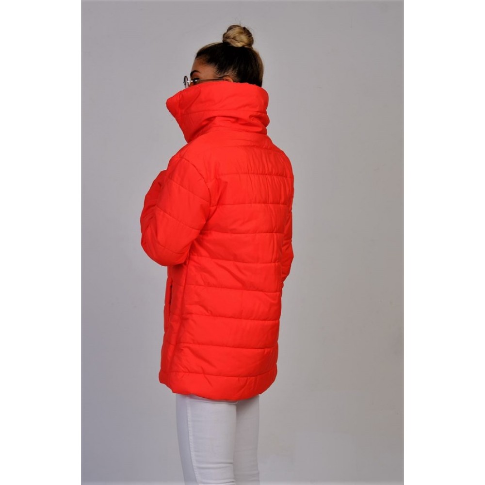 Bayrak Kırmızı Dik Yaka Su Geçirmez Uzun Şişme Mont