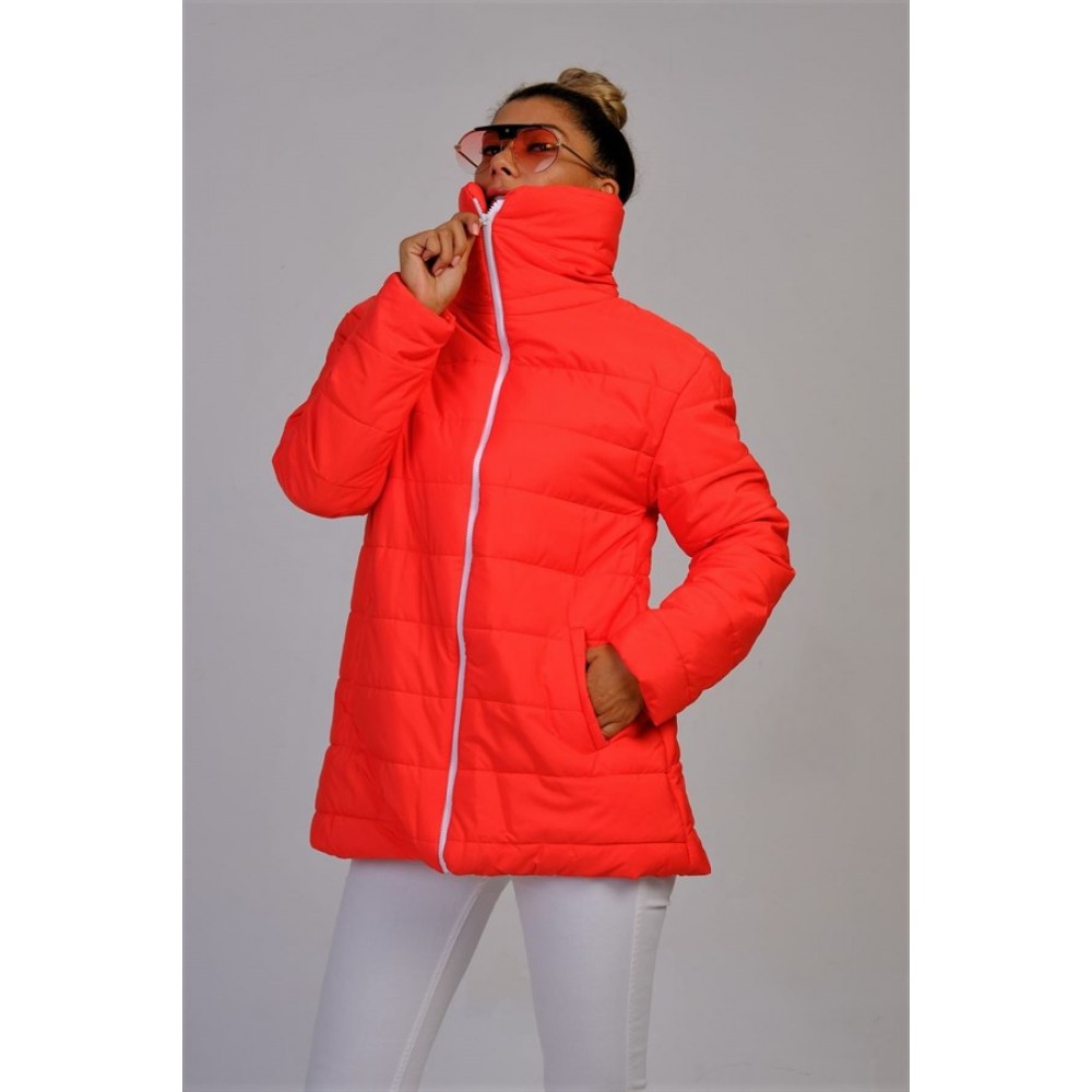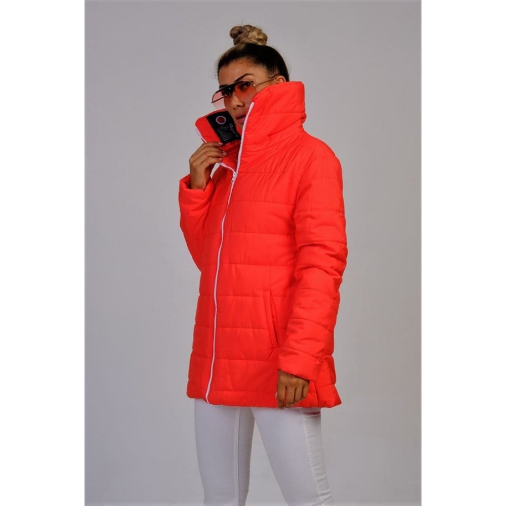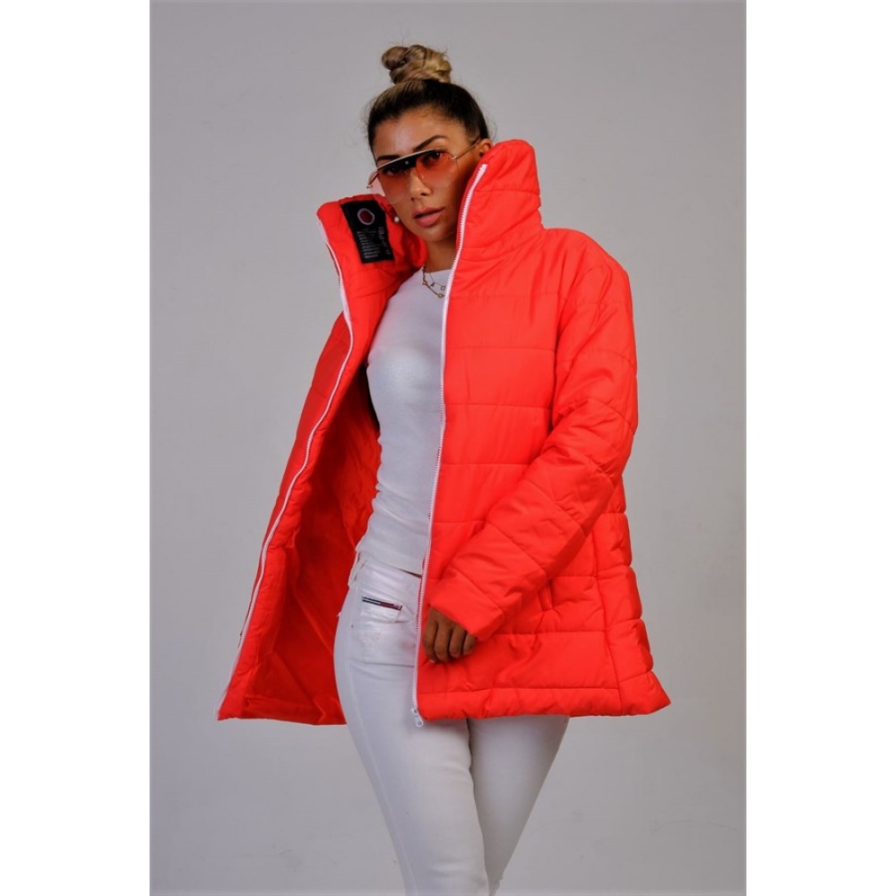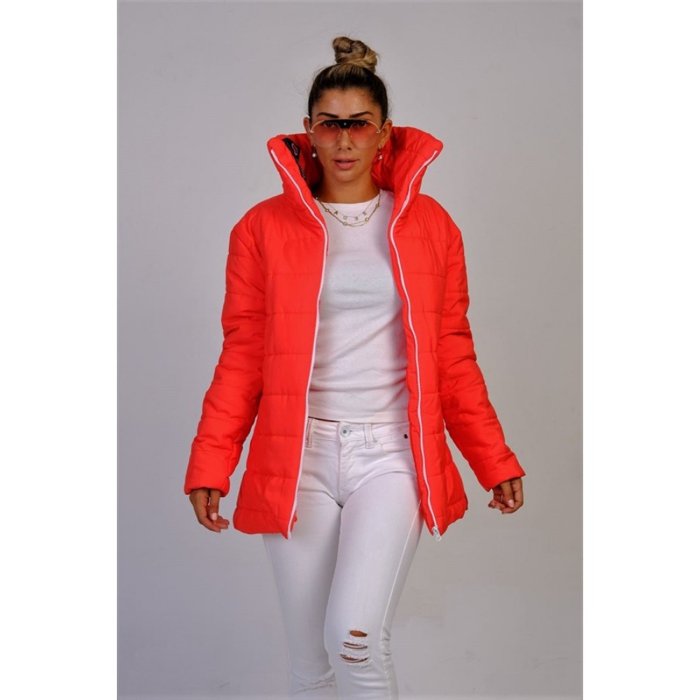 Bayrak Kırmızı Dik Yaka Su Geçirmez Uzun Şişme Mont Kırmızı SMUKDYMBKXKM033