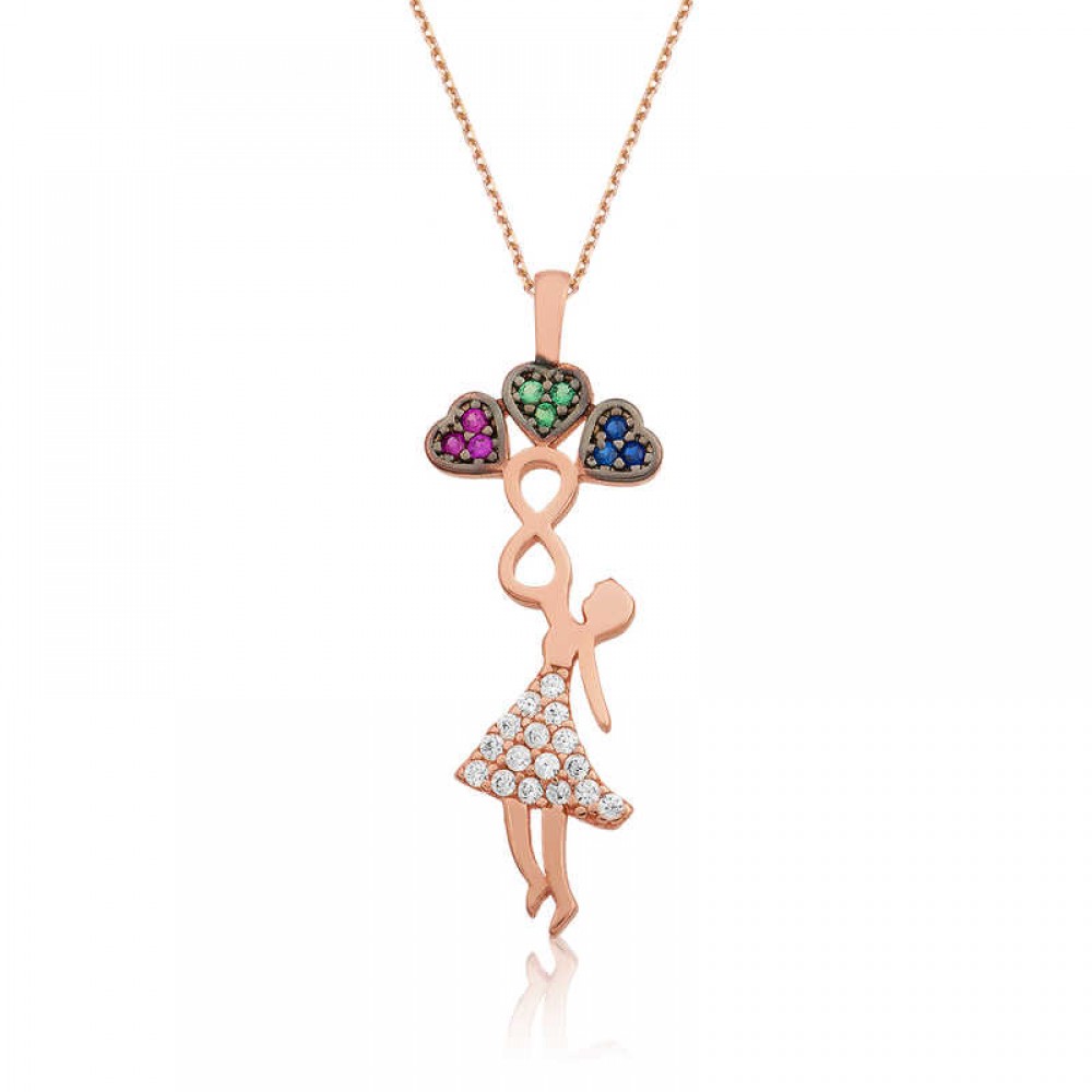 Kolye 925 ayar gümüşten imal edilmiştir. Gümüş üzerine rose kaplama yapılmıştır. Rose kaplama yapıla..