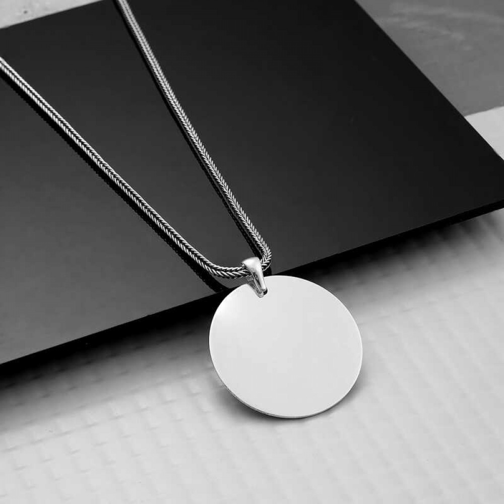 Gümüş Yuvarlak Plaka Kolye